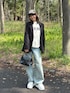ながいゆなのテーラードジャケット「【お気に入り11万人突破】新色追加 ベーシックな1枚で大人に♪肩にかけるだけでも雰囲気おしゃれ テーラード ジャケット」を使ったコーディネート