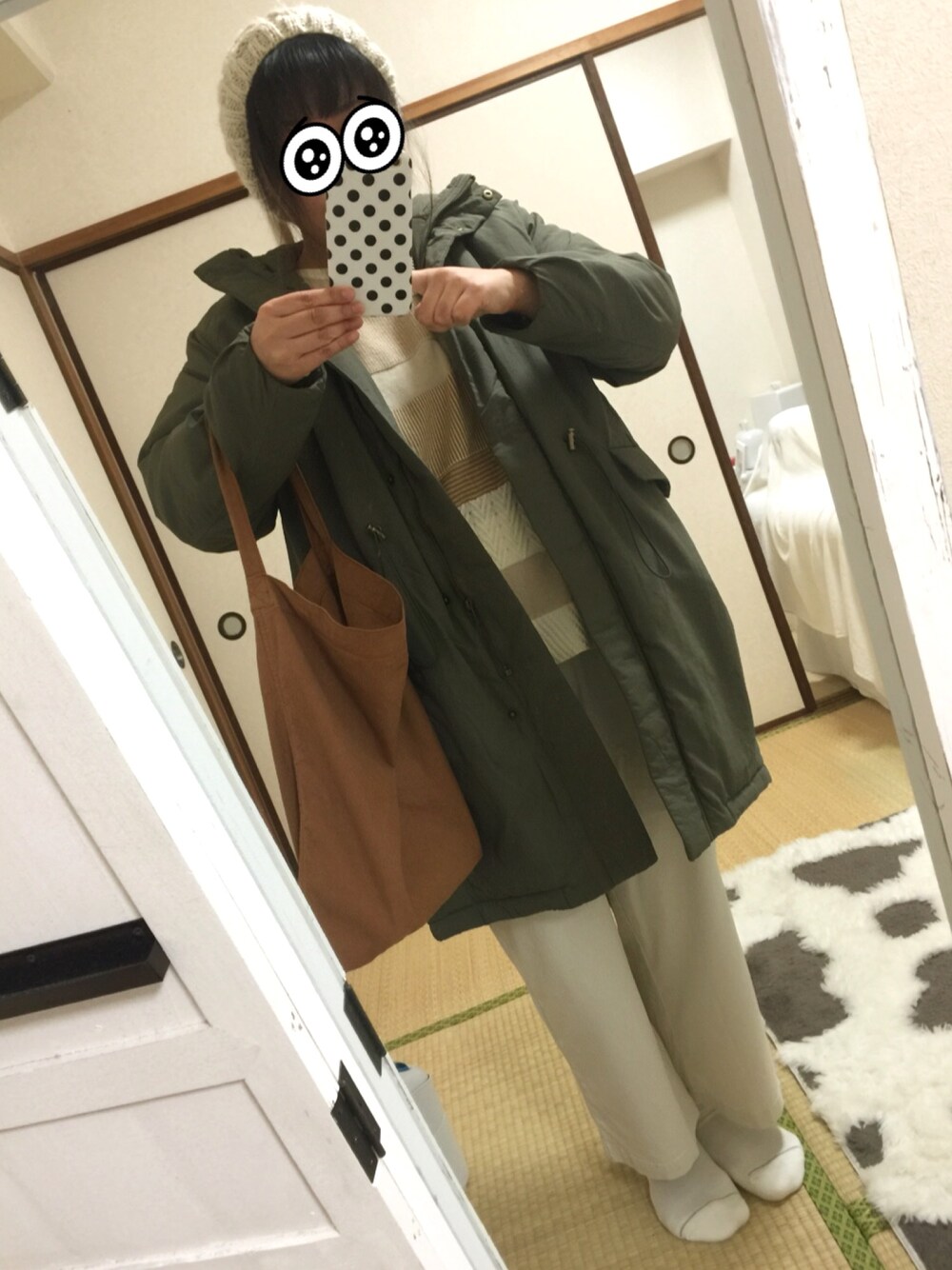 いつかのセールで買ったニット、 けっこう薄手だからたぶん春物なんだよね(^◇^;)。。 アウターは最近買ったセール品。 めっちゃあたたかいし安かった☆