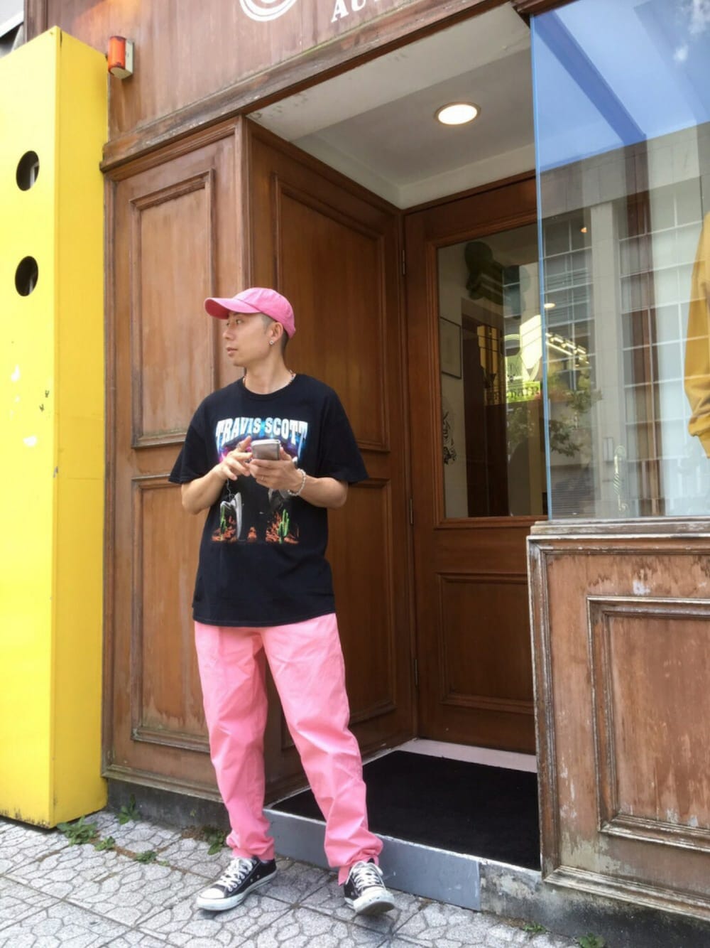 C.Eのこのパンツを合わせたくって、今シーズンPre-collectionのDRESS TOKILL のサンプルキャップを合わせました。TRAVIS のT-shirtは色数が多いので合わせやすいですね🌴🌴