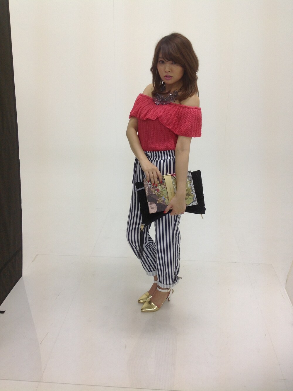 オフショル✖ストライプPTで今年っぽい(^O^) トップス6900円 パンツ11000円
