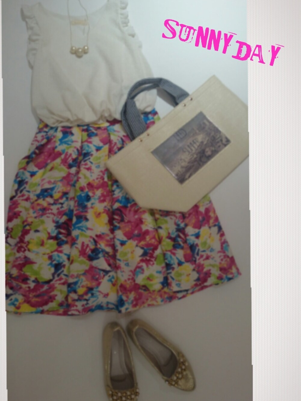 eriのスカート「花柄ミディskirt ノースリトップス シャイニーshoes」を使ったコーディネート