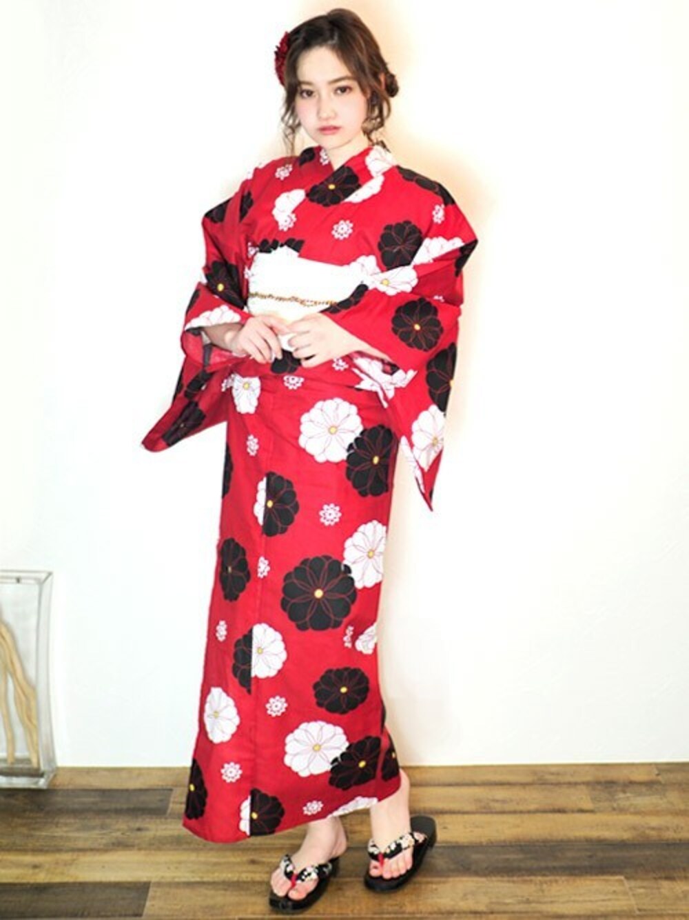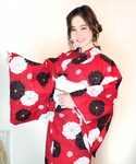 赤地にレトロな花柄。 サイズ:F モデル身長:162cm