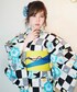 変わり市松に涼しげあさがお。 サイズ:F モデル身長:159cm