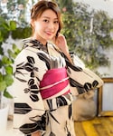 いつもより、ワンランク上の綿麻浴衣。 上品でシックな1枚。 サイズ:F モデル身長:160cm