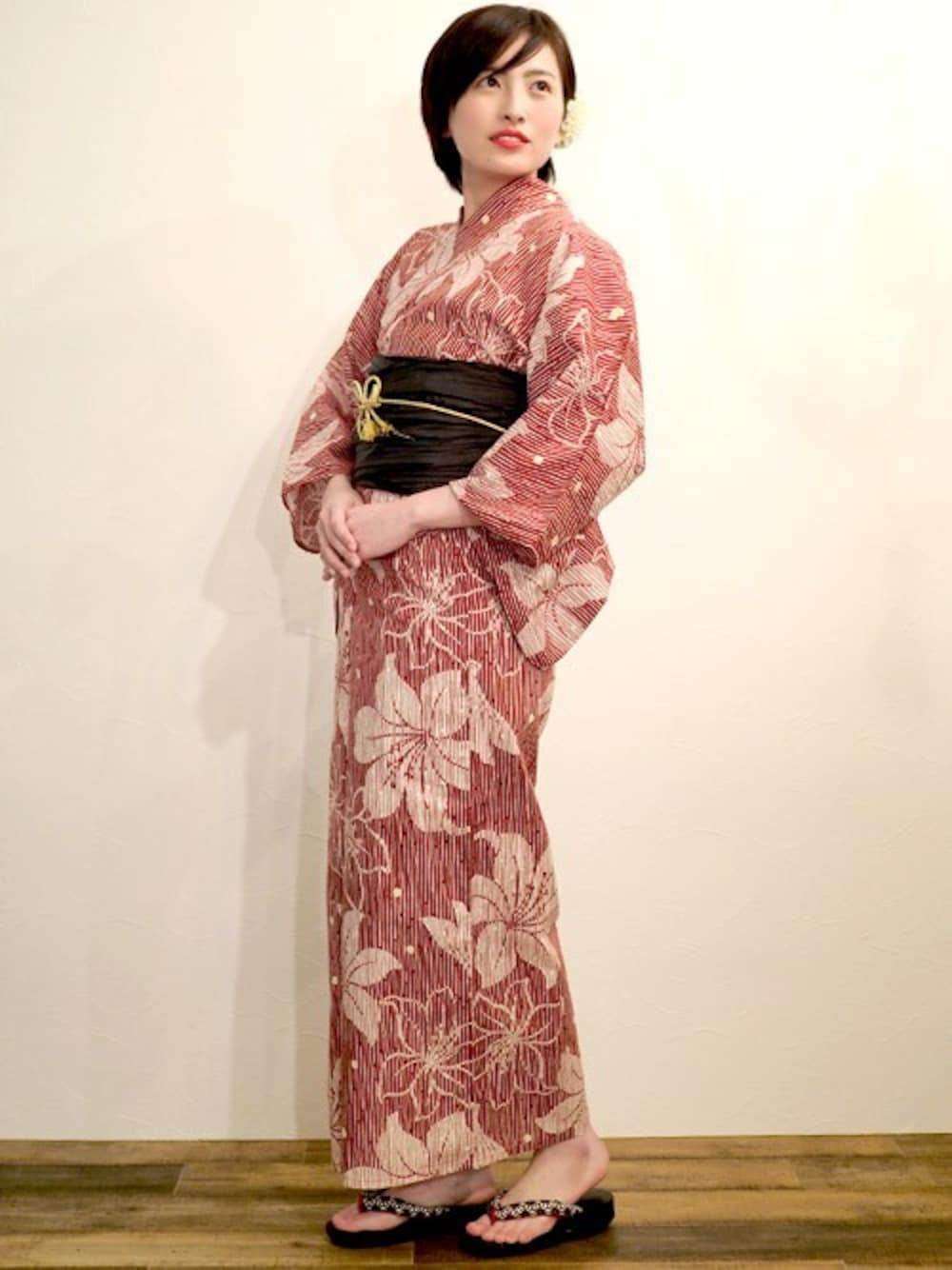 サイズ展開が多い浴衣。 ぴったりなサイズをぜひ! サイズ:F モデル身長:163cm