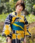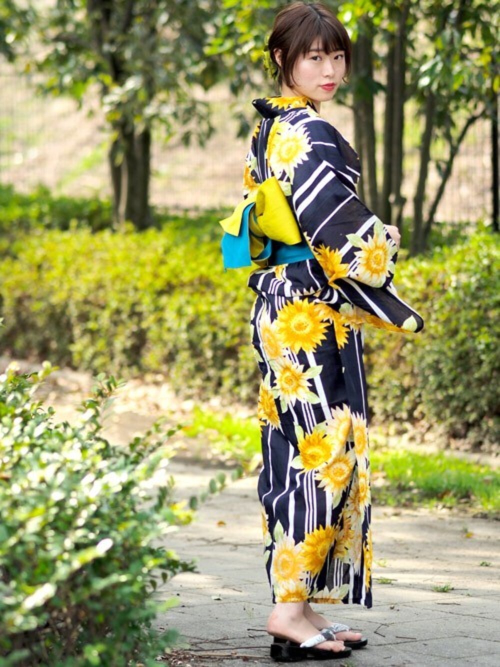 黒地に鮮やかな向日葵。 サイズ:F モデル身長:159cm