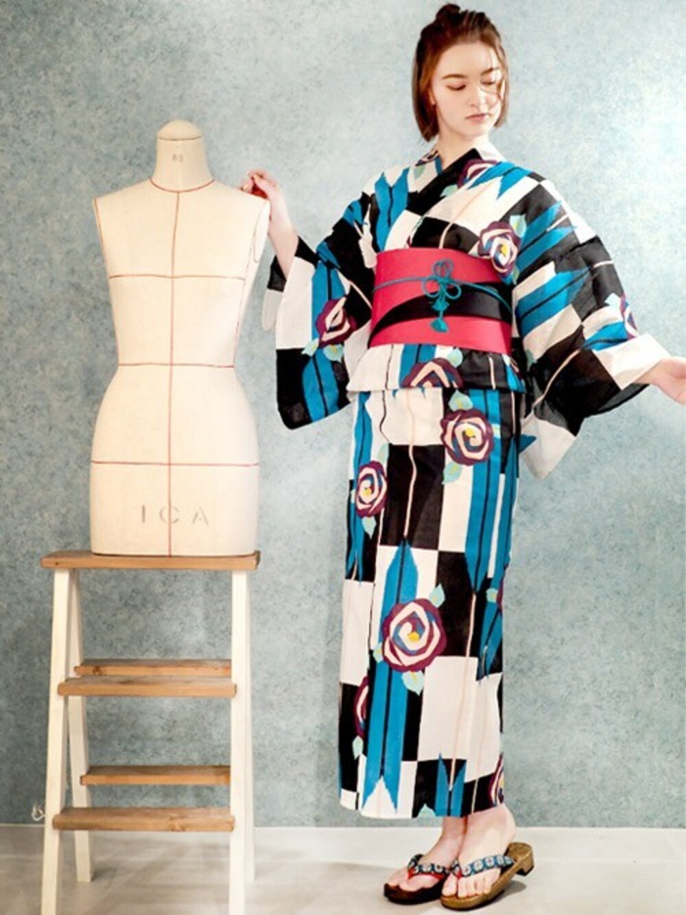 涼しげな変わり織浴衣。帯の種類が選べる2点セット♪ フリー サイズ:F モデル身長:163cm