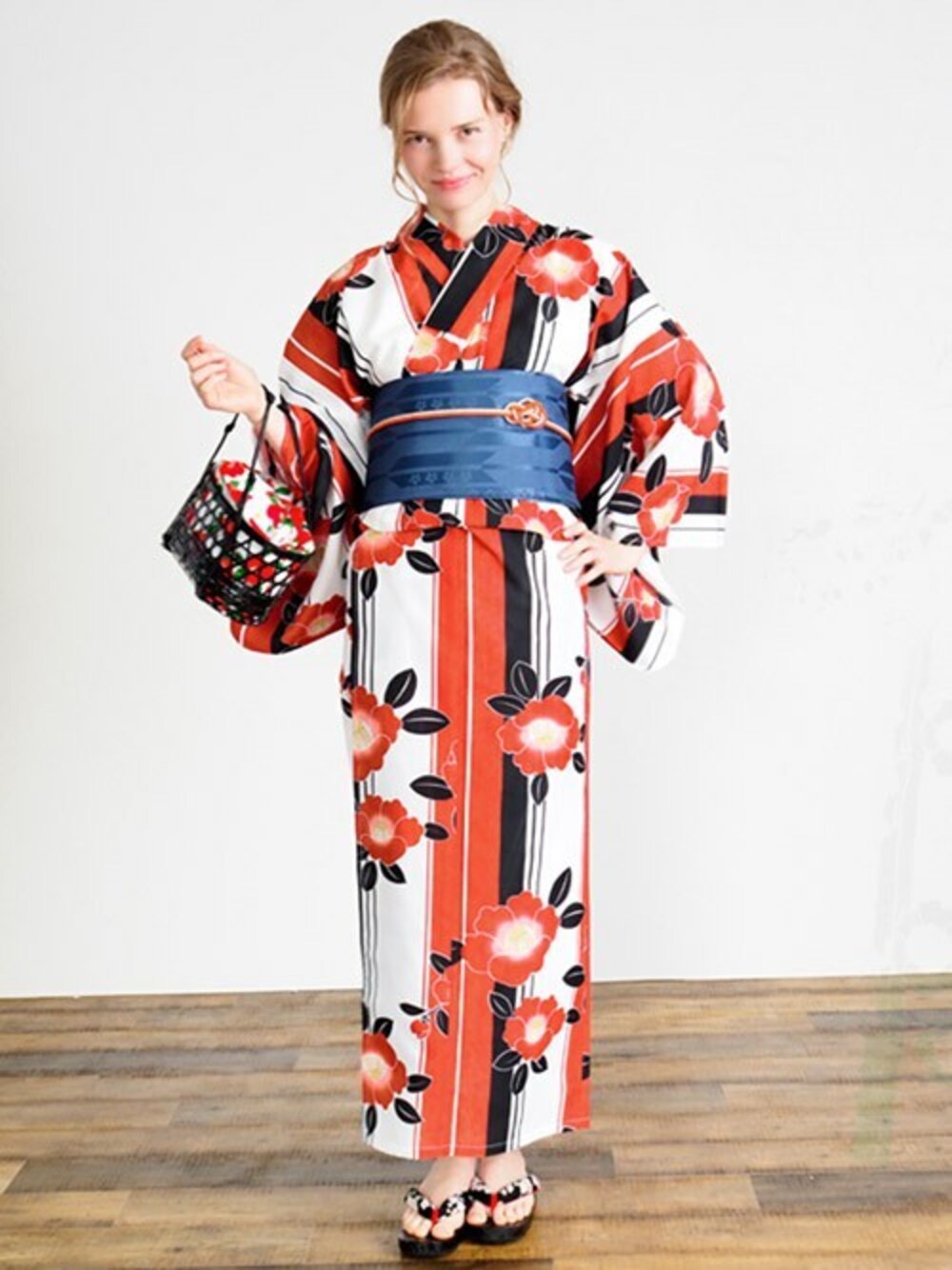 簡単に着られる着付け要らずの二部式浴衣。 サイズ:F モデル身長:163cm