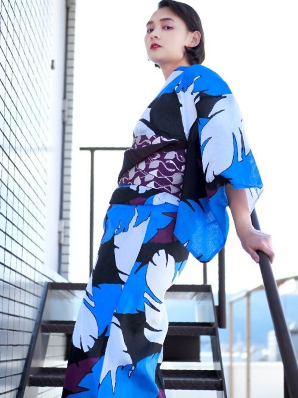 アンココン 〜 UNCOCON 〜の浴衣「女性浴衣 レディース浴衣 浴衣 単品 浴衣単品 仕立て上がり レディース 女性用 フリー 白 紫 ブルー ヤシの木 パープル 個性派 変わり織 お洒落」を使ったコーディネート