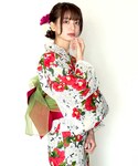 アンココン 〜 UNCOCON 〜の浴衣「女性浴衣 レディース浴衣 浴衣 単品 浴衣単品 仕立て上がり 綿麻 レディース 女性用 花柄 椿 ツバキ 赤 レッド 桜 大人っぽい 変わり織 お洒落」を使ったコーディネート