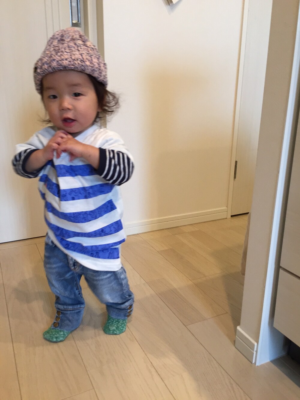 とにかく歩き回る息子。 いたずらしてる時以外は歩き回る。 写真もブレブレ。。涙