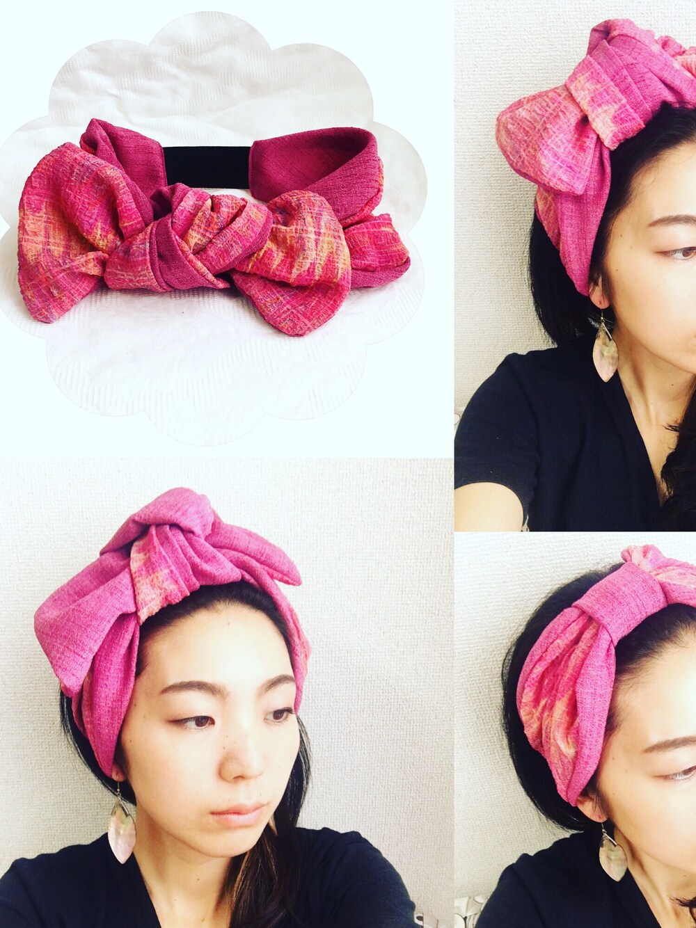 ナマステ🙏👳 可愛くなりすぎないリボンと、 . バランスのとりやすいボリューム感が . とてもご好評いただいております‼︎ ・*:.。..。.:*・*:.。..。.:*・*:.。..。.:*・*:.。..。.:* . 《シワ感が素敵な楊柳調の生地》を使用。 マーブル柄のグラデーションとマゼンダとの色合いが美しく華やか♡ . "個性的なデザイン"でありながら お洋服と"コーディネートしやすく" そして"飽きがこない"よう "3way"に仕上げました◎ ぜひこちらからご覧ください🙏🌞 . https://minne.com/un-da