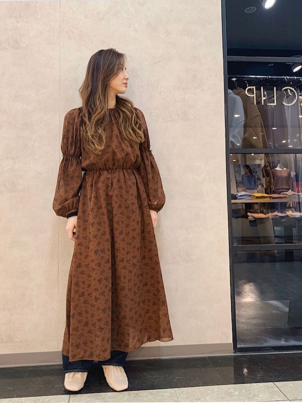 アンダープラウ AEON釧路店のワンピース「SHEER FLOWER ドレス」を使ったコーディネート