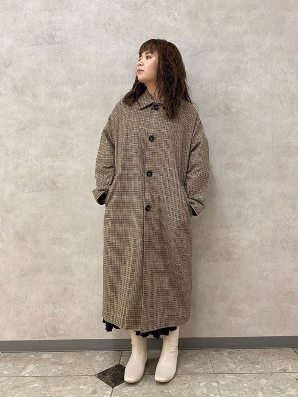 アンダープラウ AEON釧路店のステンカラーコート「BAL COLLAR ロングコート」を使ったコーディネート