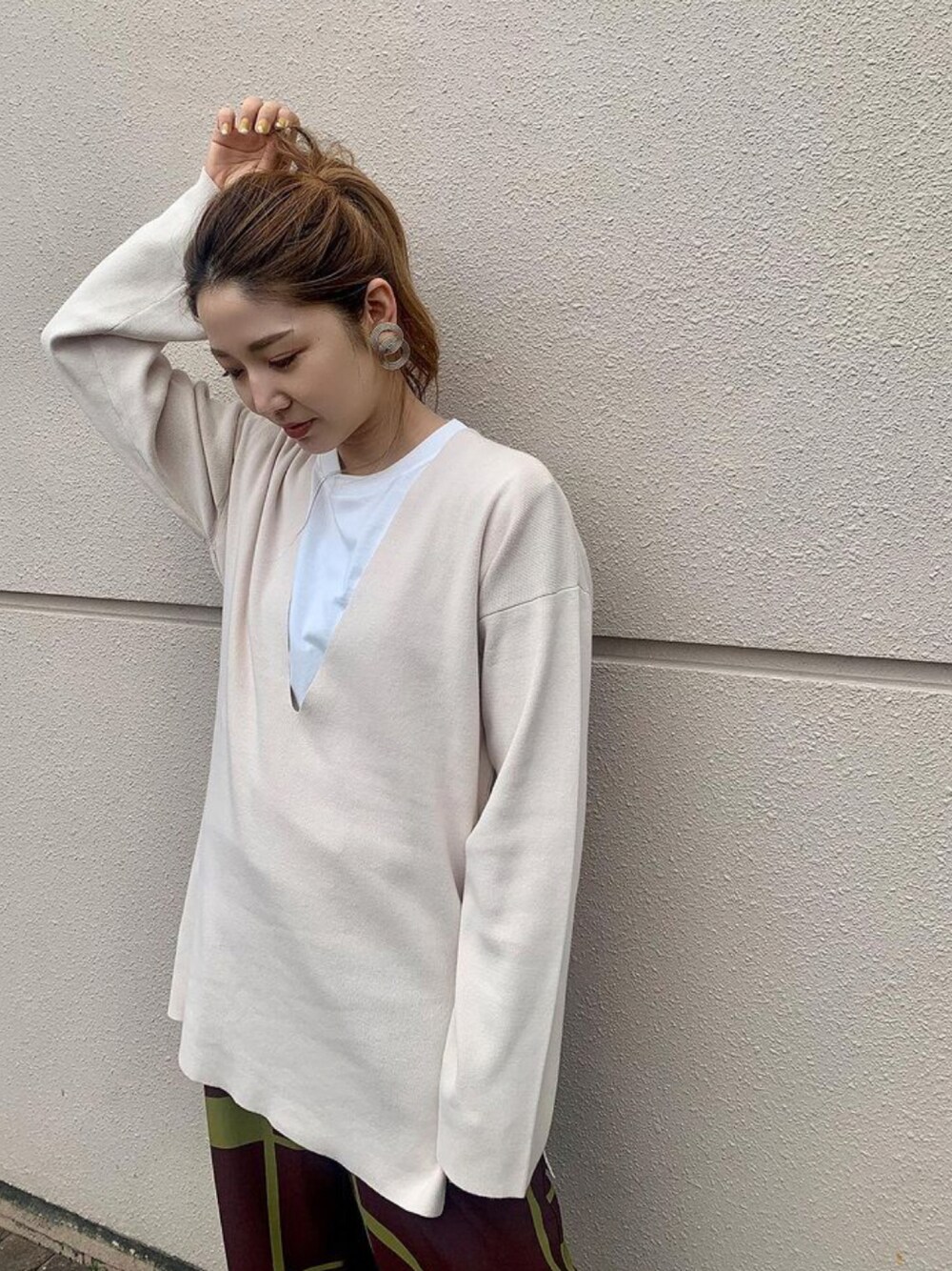 アンダープラウ AEON釧路店のニット/セーター「ウォッシュドVネックニット」を使ったコーディネート