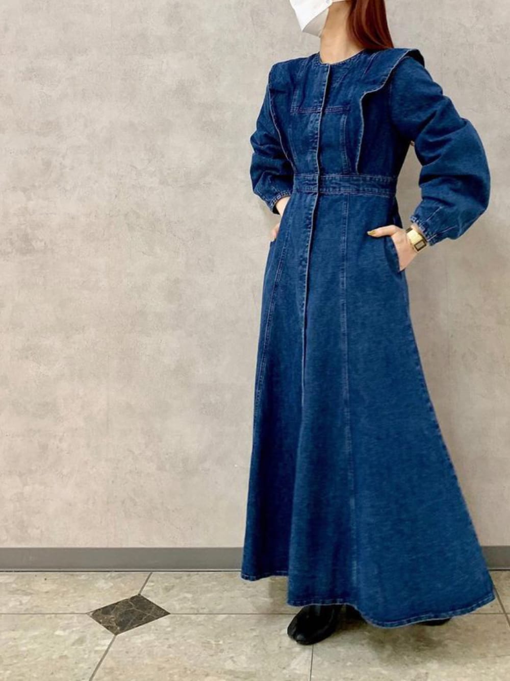 アンダープラウ AEON釧路店のワンピース「PANEL DENIM LONG ドレス」を使ったコーディネート