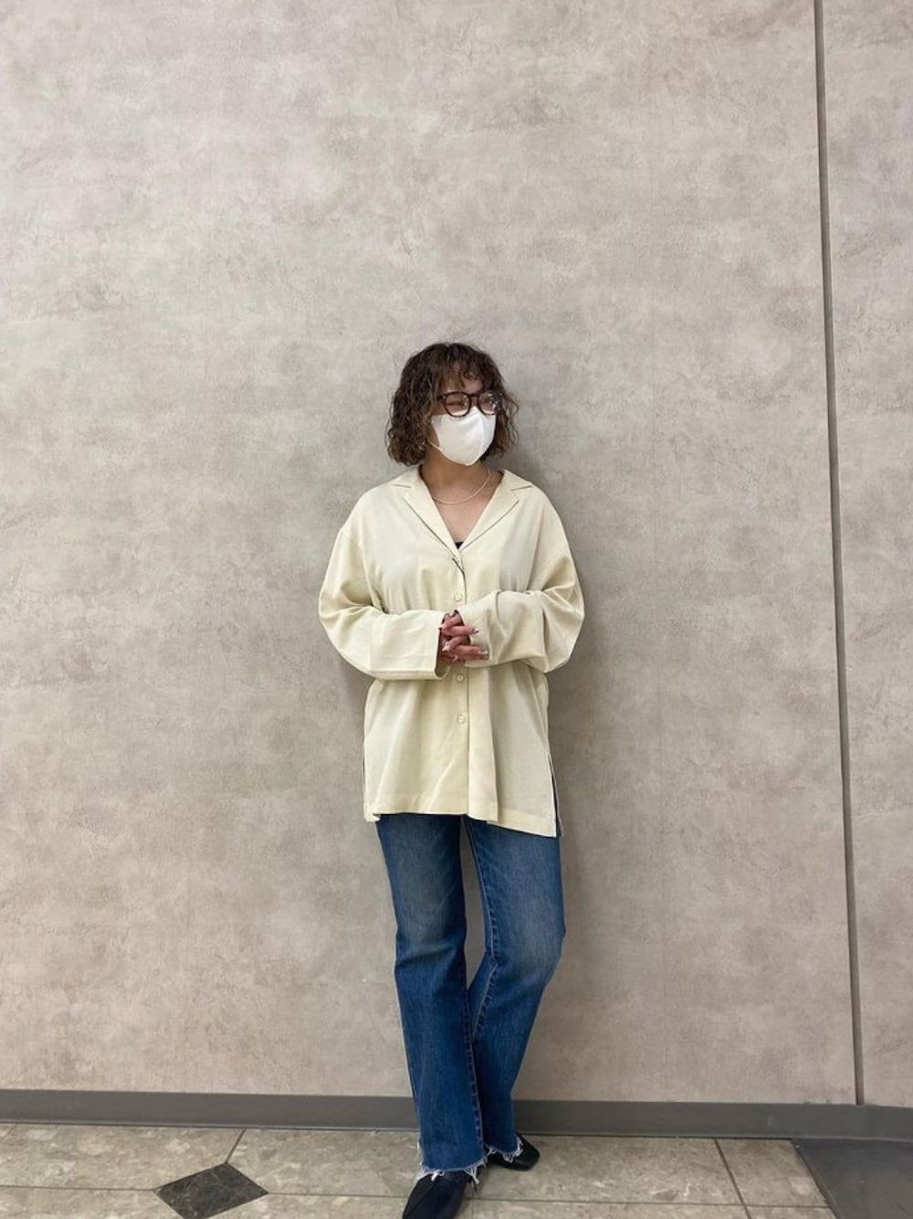アンダープラウ AEON釧路店のシャツ/ブラウス「OVERSIZED NOTCH COLLAR シャツ」を使ったコーディネート