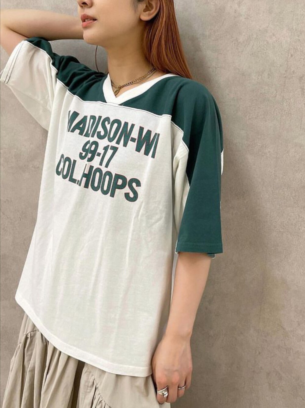 #ungrid ━━━━━━━━━━━ AEON釧路店 UNDER plough アンダープラウ 0154-39-0066 通信販売も行なっております。 . Instagram⬇︎ MAIN @underplough SUB @underplough_staff ━━━━━━━━━━━ ********************************** #ungrid ➨ #VネックフットボールロゴTee ¥5,500(tax in) colour GRN.NVY.BRD size FREE ********************************* 古着のフットボールTeeをモチーフにした ロゴTee🏈✨ 首元がスッキリ見えるVネックがポイント💖 バイカラーデザインがカジュアルでおしゃれ映え✨ 程よいゆるさと丈の長さもちょうど良い🙆♀️ . 他と差が付く1枚です♪🌴🌺 . . その他着用👇 " skirt " #ungrid #ギャザーデザインスカート " sneaker " #2365 #V2 . 〜〜〜〜〜〜〜〜〜〜〜〜〜〜〜 【MEIN_instagram account】 ⇒ @underplough 〜〜〜〜〜〜〜〜〜〜〜〜〜〜〜