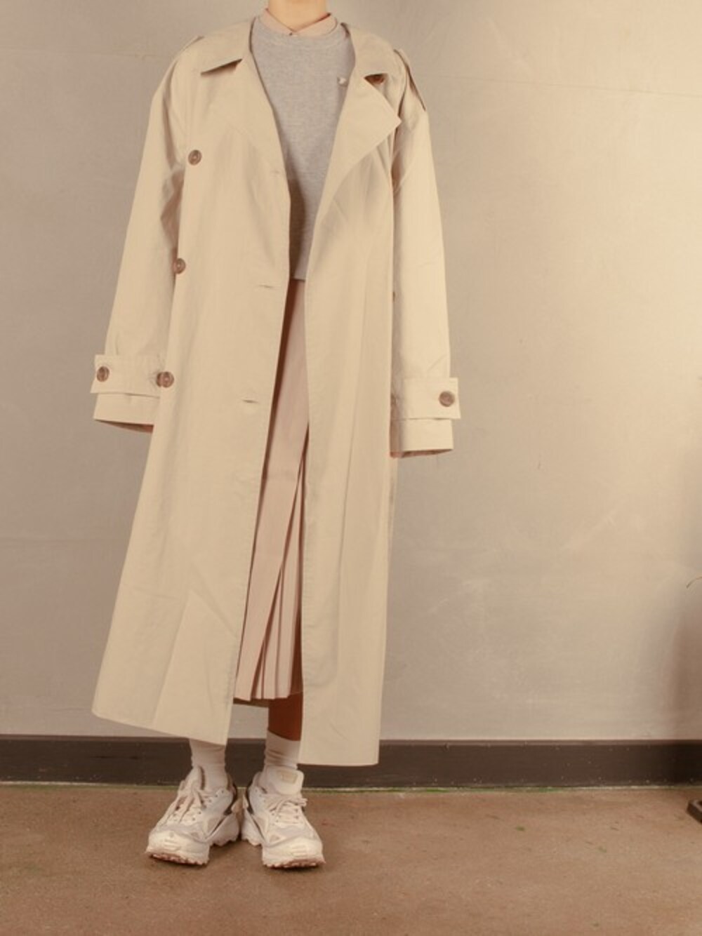 understudyclubのトレンチコート「サーティーンマンス(13MONTH) バック オープンロング トレンチコート (グレー)」を使ったコーディネート