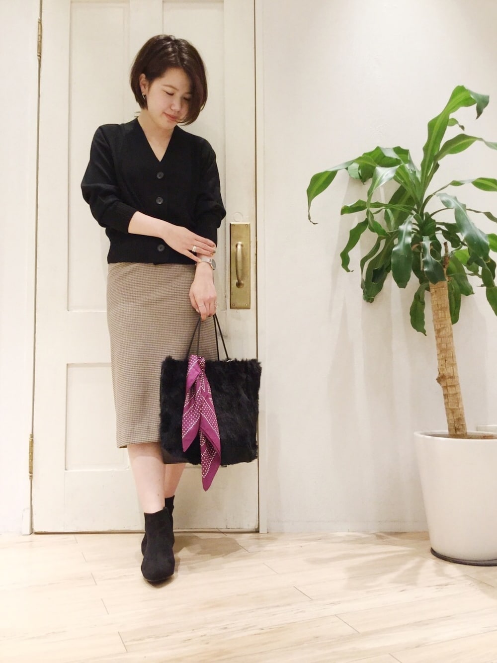 sa-kiiのカーディガン/ボレロ「ケーブルリブショートカーディガン」を使ったコーディネート