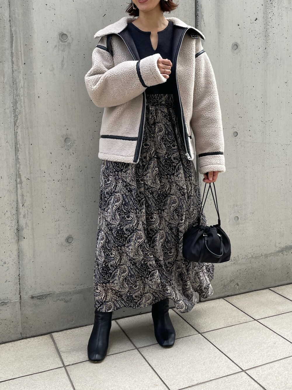 ボアブルゾン×ワンピース