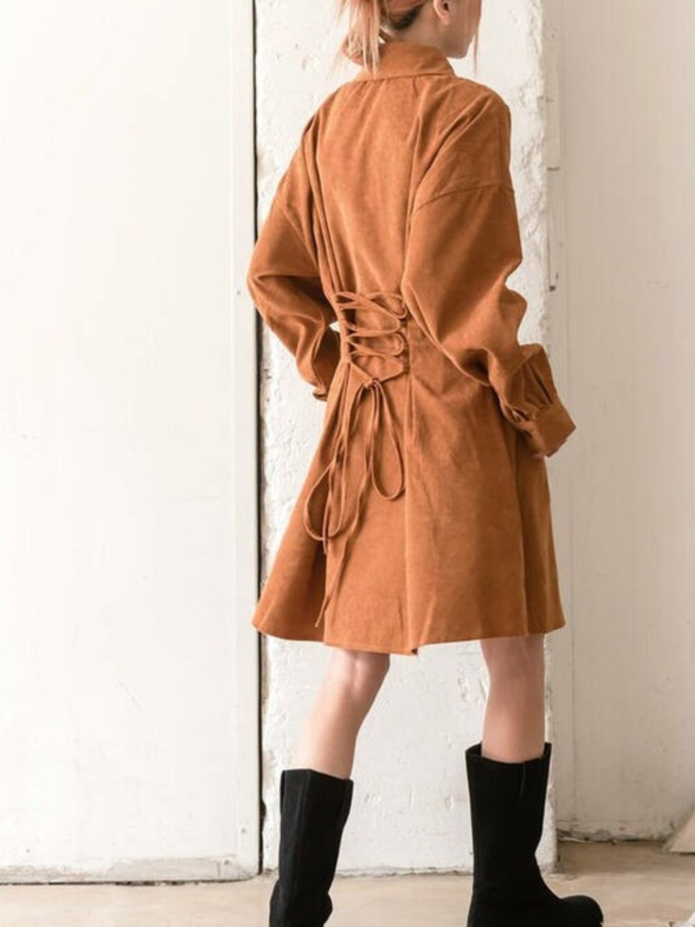 UNE MANSIONのシャツワンピース「コーデュロイミディカラーワンピース」を使ったコーディネート