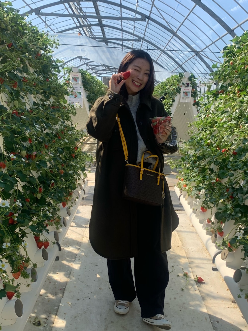 イチゴ狩りに行った時の服装です🍓 カバンはこの日お友達にプレゼントしてもらいました🎁🎀