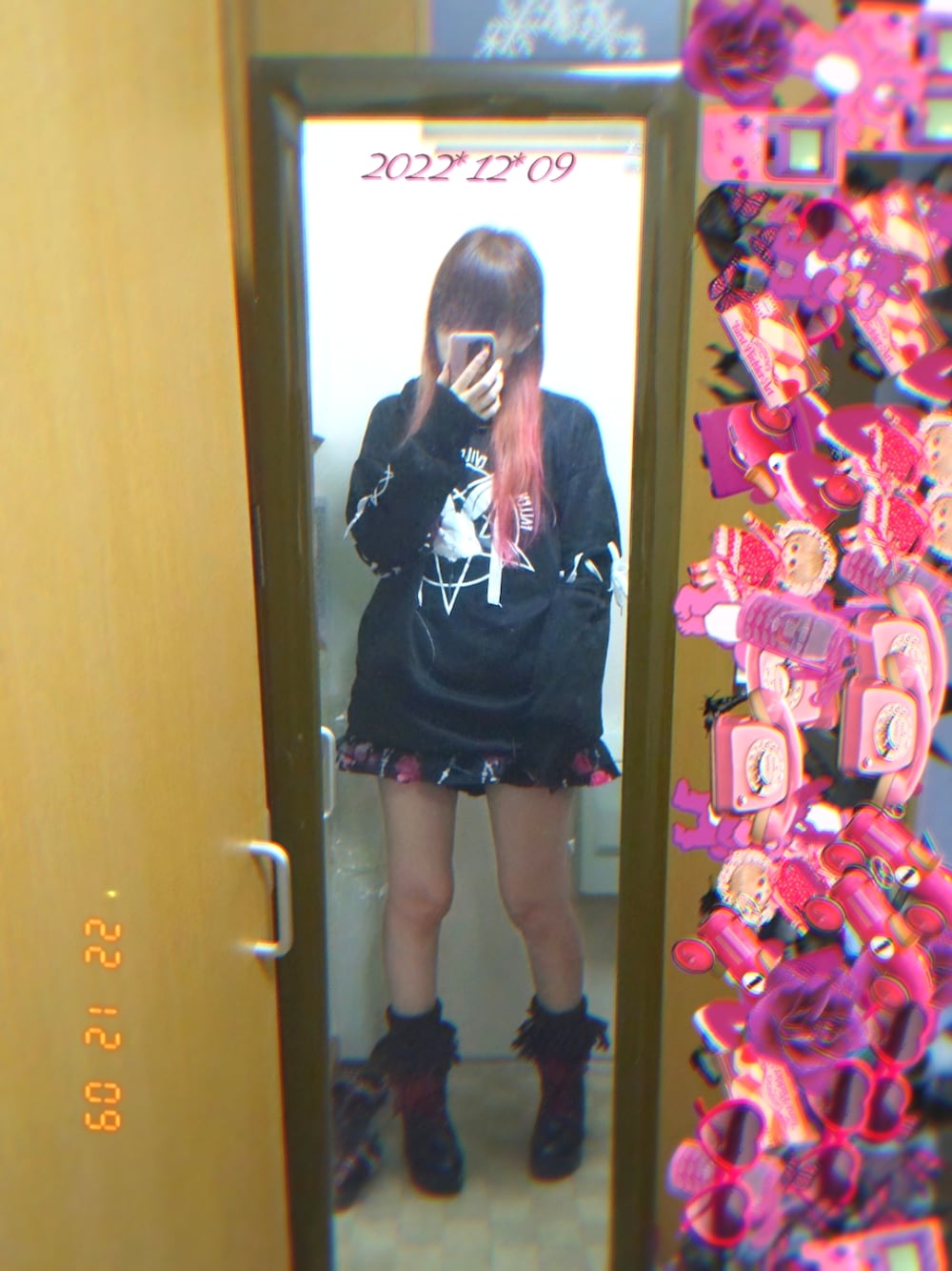 2022*12*09 また地雷系ぽい感じです。 パーカーのすそから、スカートチラ見せしてます。