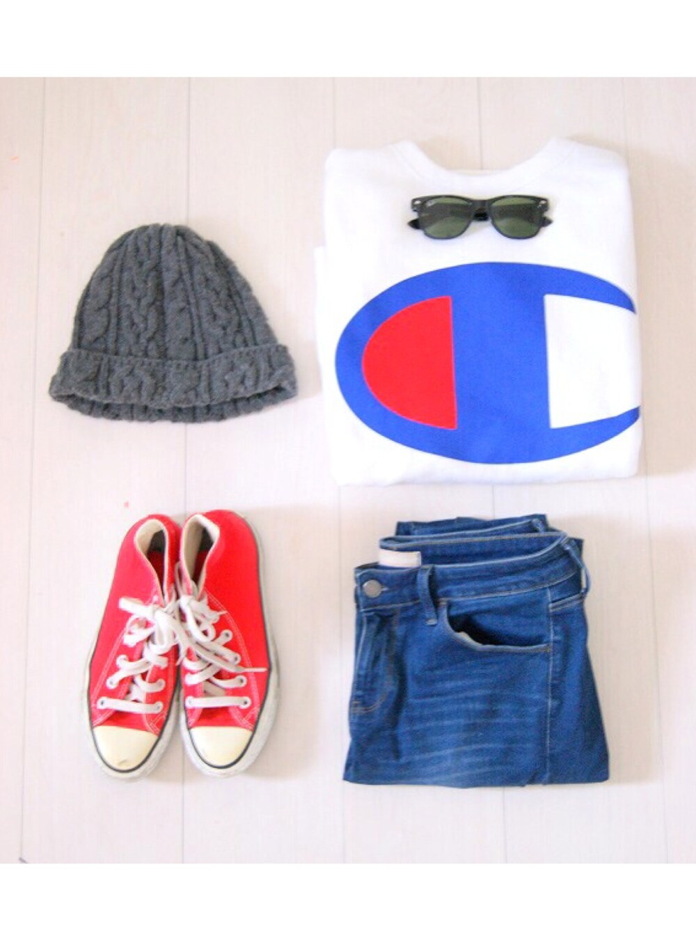 チャンピオン×ナナミカのスウェットゲット! 最近赤コンバースにハマってます✨