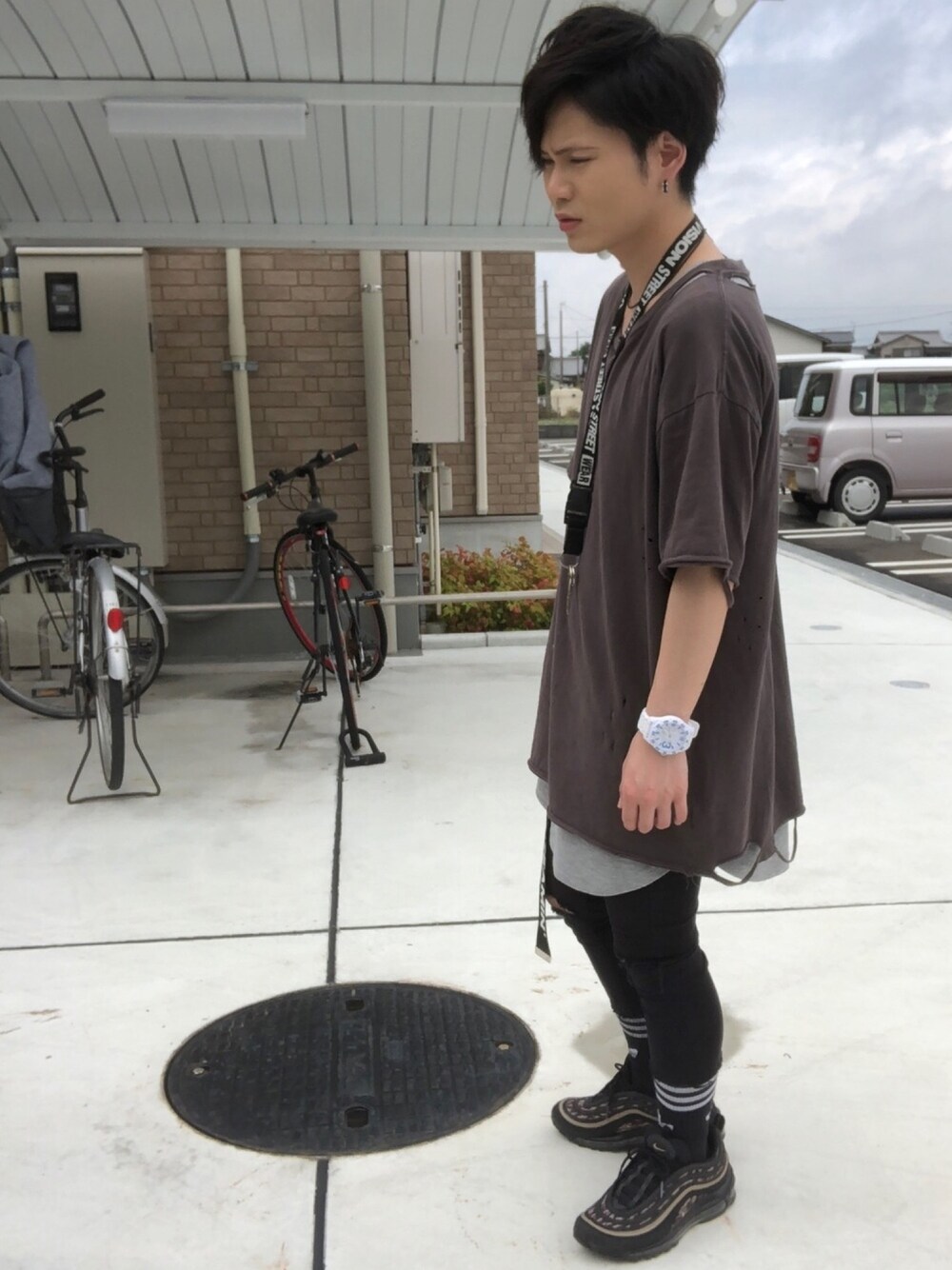 黒コーデ🔥🔥 トップスもボトムスもダメージ🤣🤣 ストリートカジュアル✨✨ 髪のセットを耳かけしてみたけど うーーん、違和感(´;ω;`)