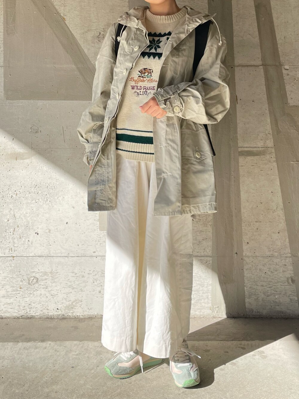 こんにちは 木曜日はオールホワイトコーデがしたくなっちゃうみたいで🐩 スノーパーカーはウエストをしぼって着るのがすきです 🦊でした