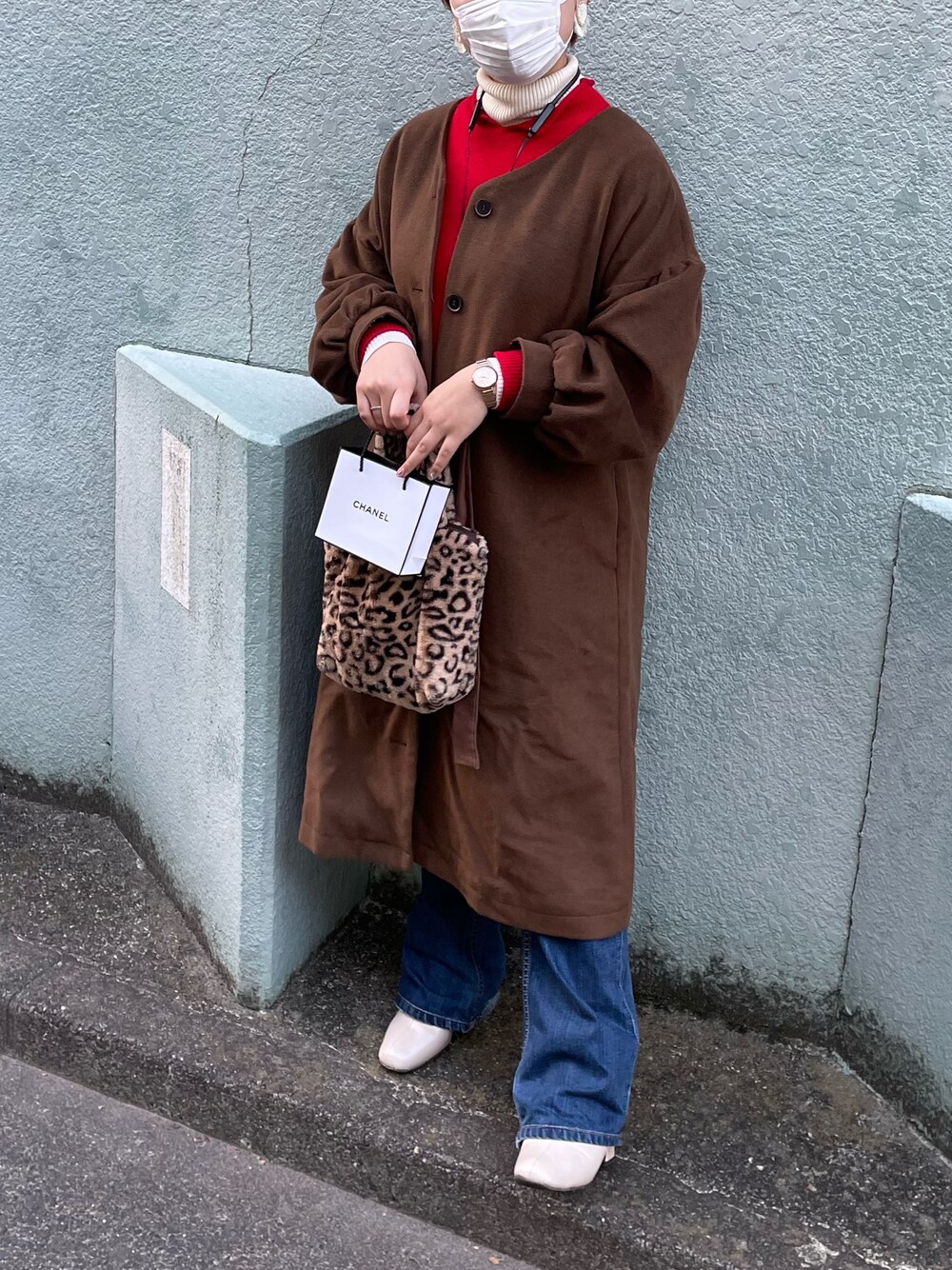 こんばんは、お久しぶりです🌙 クリスマスに合わせて赤を入れて、ウエストキュッとコートで女の子に♥️ ガーリーな🦊でした