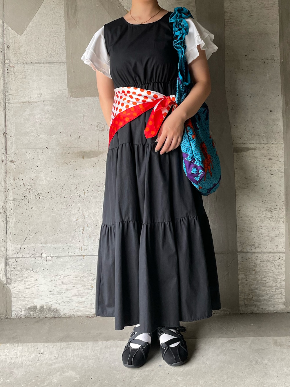 🦊ですのワンピース「【Mayree】ノースリーブティアードロングワンピ 2021SS」を使ったコーディネート