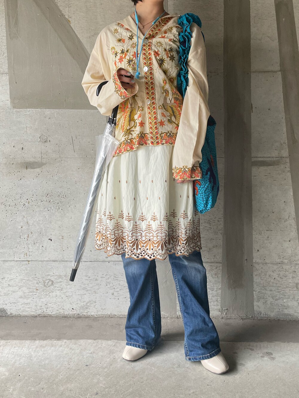 おはようございます ワンピースの刺繍とシャツの刺繍を絶妙にマッチさせちゃって、とっても秋楽しんじゃってるよコーデになりました🍂 🦊でした