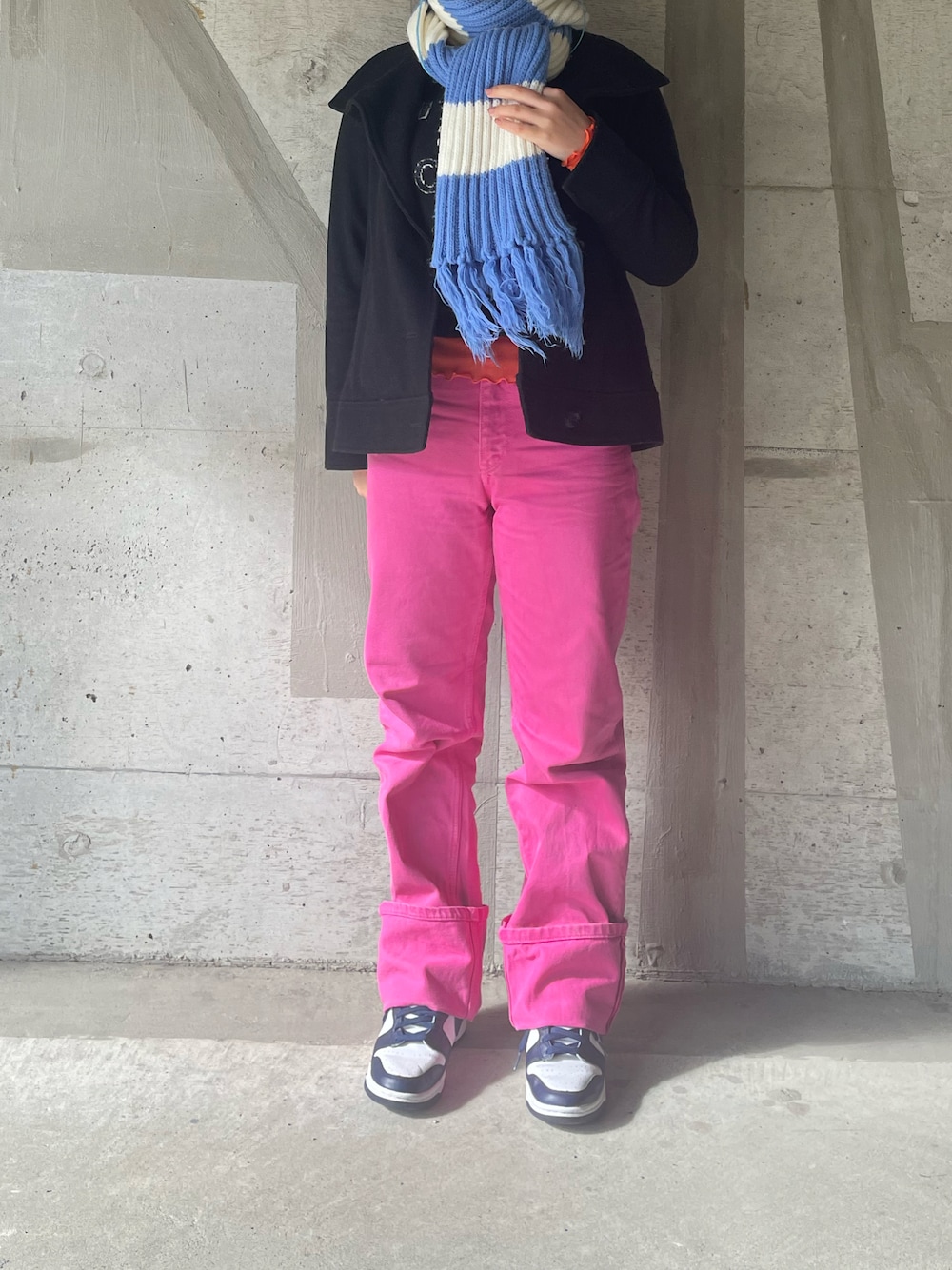 こんばんは ほんとはもっとぶわってまるいシルエットのアウターを着たかった ピンクにブルーなんて最強じゃん☆ 🦊でした