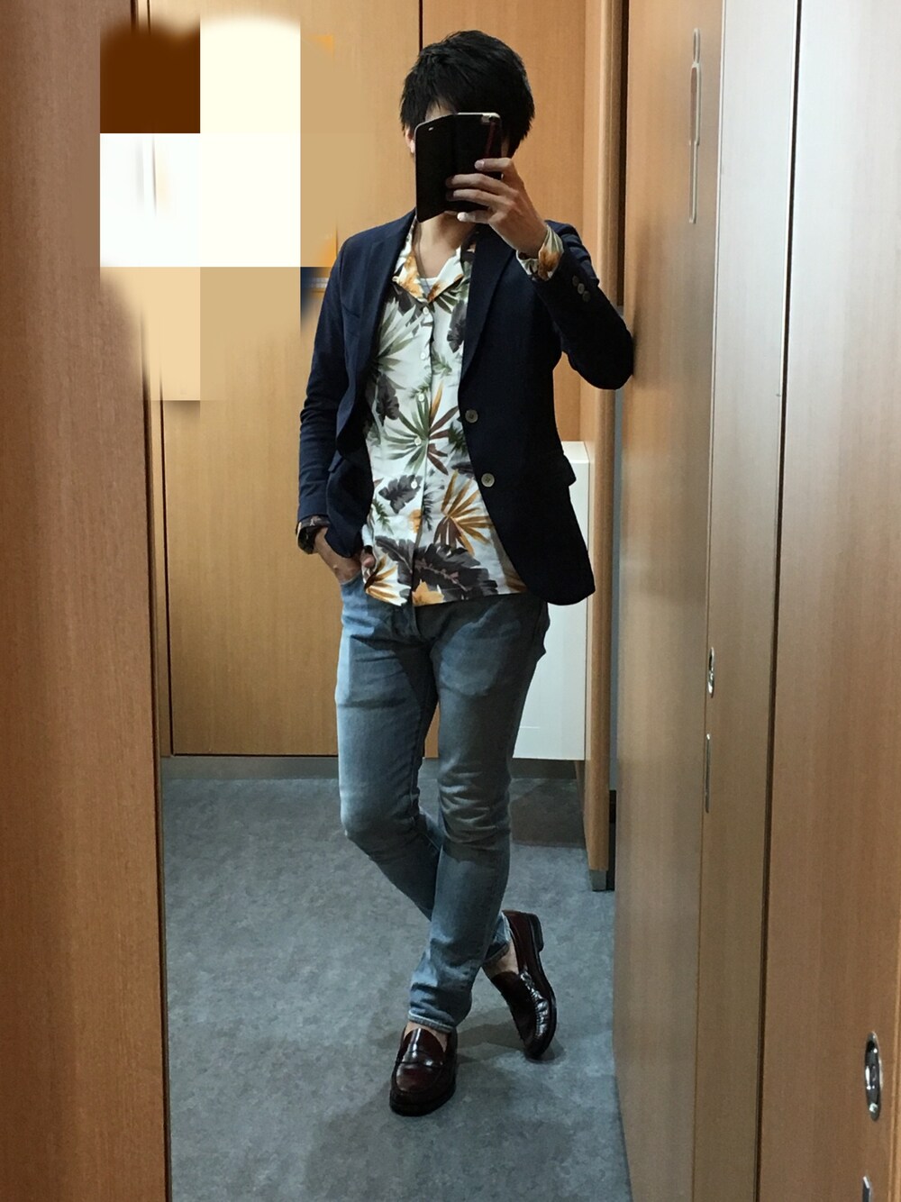 ガチャガチャした柄のシャツ最高\(^o^)/ テーラードジャケット、 柄シャツ、 スキニーパンツ、 ↑3種の神器(o^^o)! やっと春らしい気温になりました。