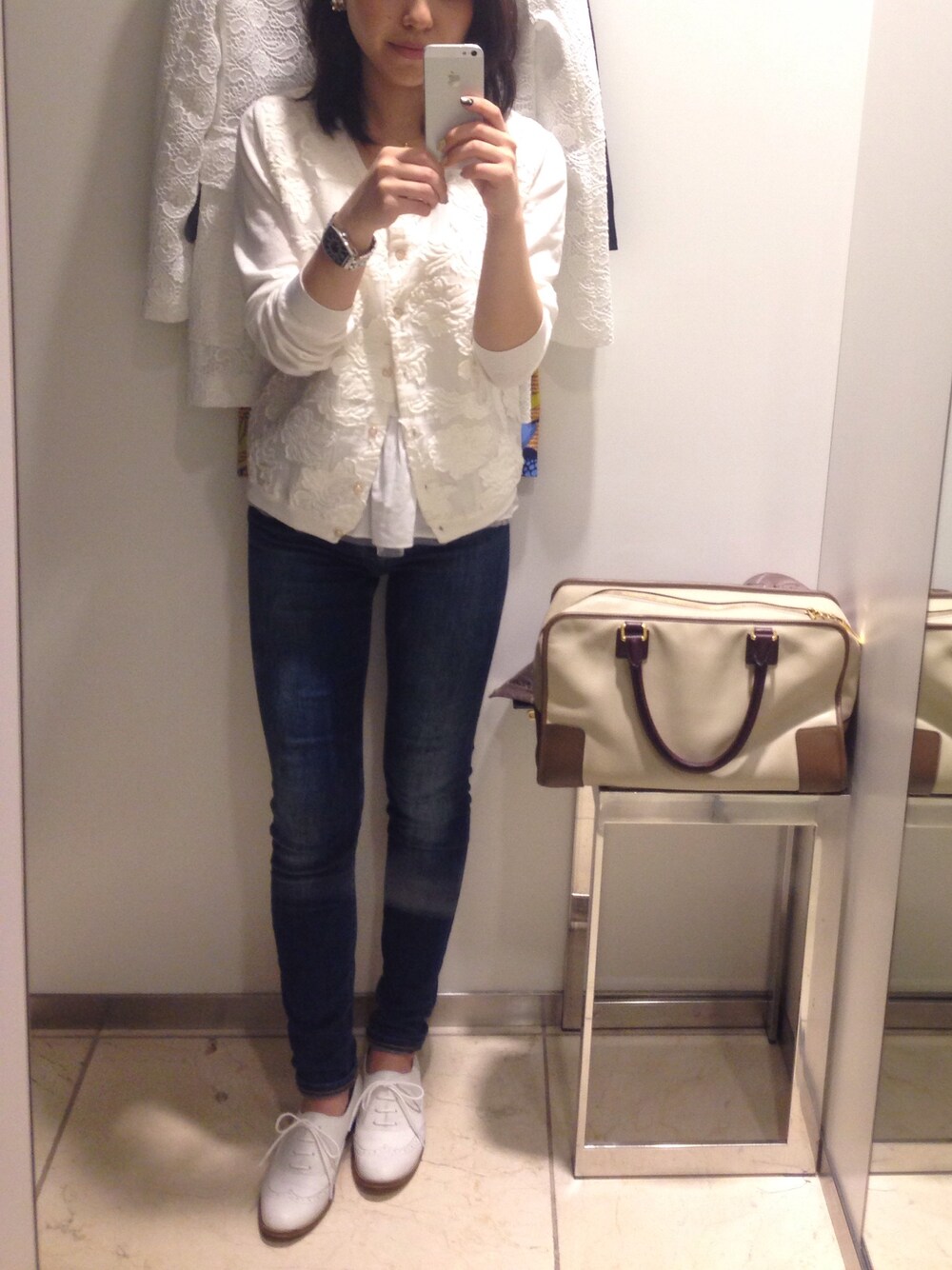 カーディガン:アナディス ドレスシューズ:オデットデオディール