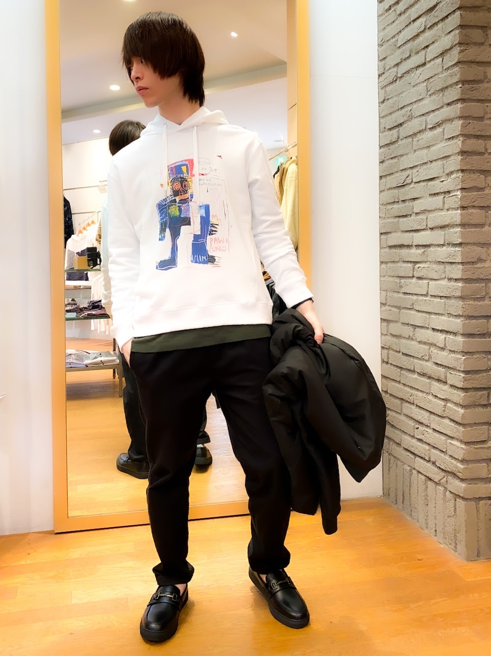 いつもご覧いただきありがとうございます! 今日は久々にパーカースタイル! アウターは暑いから着れませんでした笑 バスキアのパーカーはさりげなくアクセントになるから好きです!
