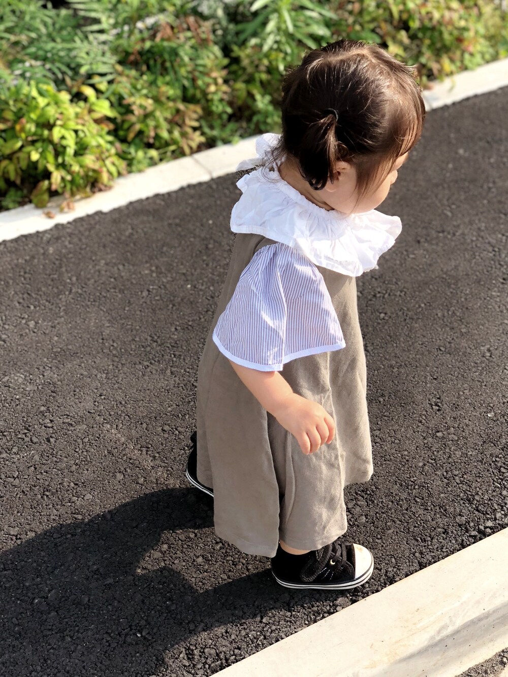 B:MINGのワンピースに付け襟を合わせてピエロっぽく。 色合いが好きなコーディネートです。 90のワンピースもマキシ丈では無くなってきました。日々成長!