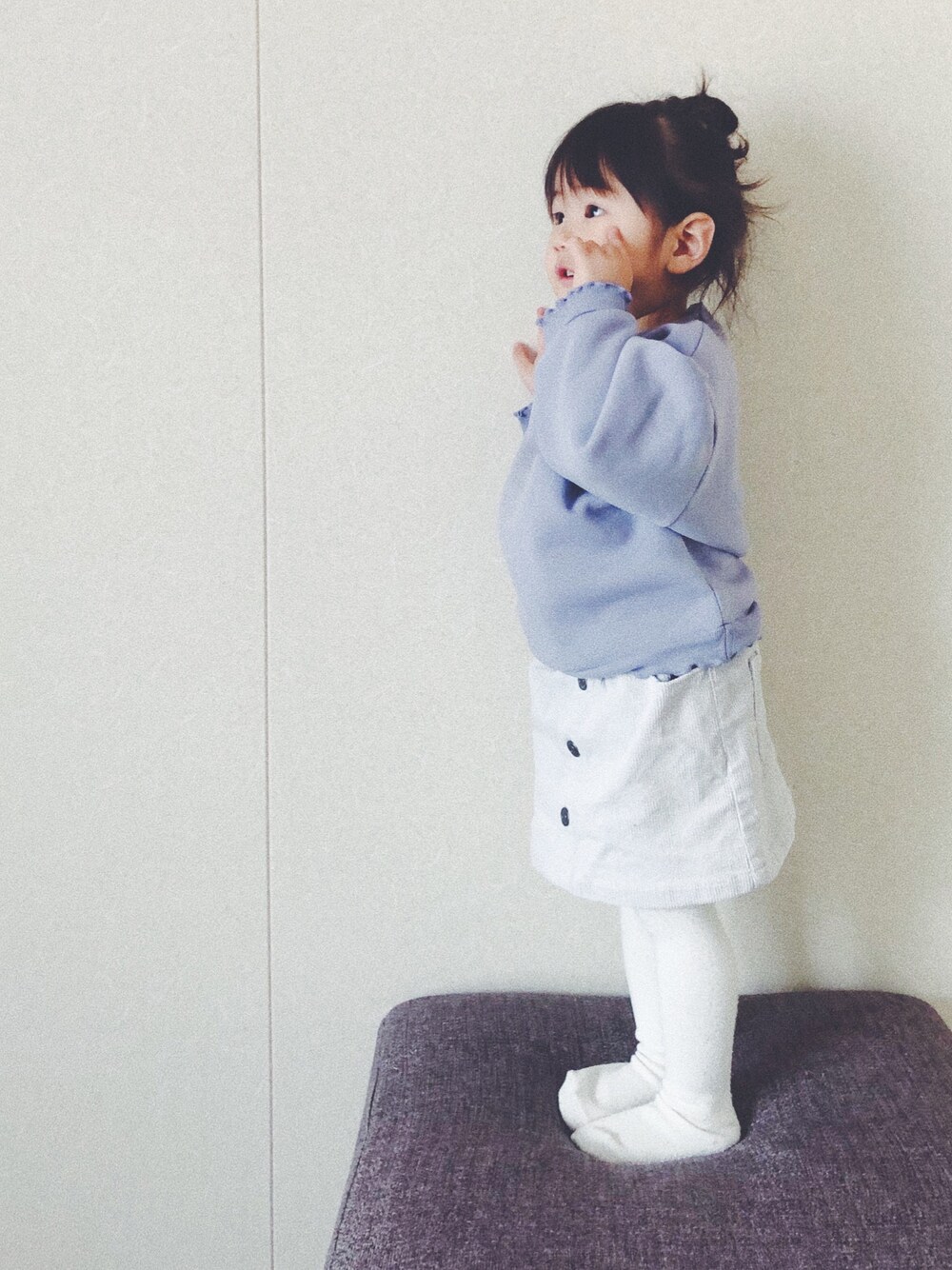 Thank you!!! ♡、+、follow アイスカラーでまとめた今日。 暖かくなる前のラスト白タイツ、、かな? 近頃ベビをヨシヨシしたり抱っこしたりと少しずつお姉ちゃんになりつつある娘です。