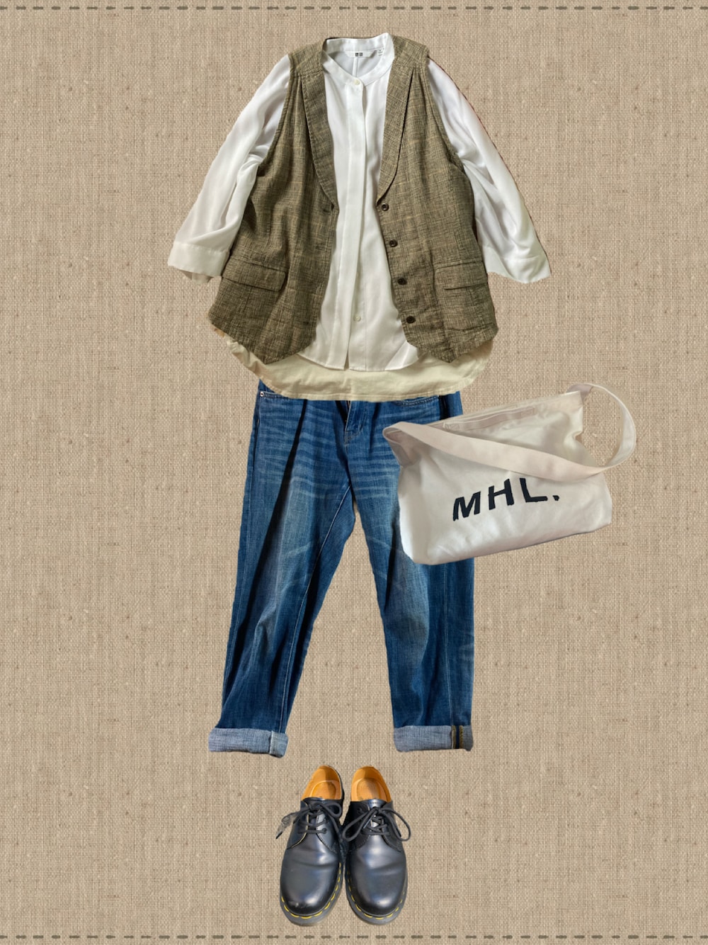 ご覧いただきありがとうございます☺︎ 今日はレイヤードファッションにしました。 ■チェック柄ベスト ■ユニクロのレーヨンドルマンスリーブブラウス(7分丈)←販売中 ■タンクトップ 最近レイヤードにハマってます!
