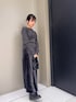 トップスは生地は柔らかくて着やすく、華奢に見えるデザインだと思います! スカートがベロア生地なので冬らしいです☃️ グレーなので暗くなりすぎずおしゃれに✨ バッグはパールがついていて上品に✨