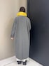 グレー🩶×黄色🟡 暗いカラーのコートにカラーのマフラーを入れると顔周りも明るくなりますよ!