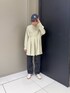 ブラウスの形がとってもおしゃれ! 淡い色なので合わせやすいですよ! 私はMサイズのパンツが丈ぴったりでした! ストレートパンツで脚が綺麗に見えるアイテムです👀
