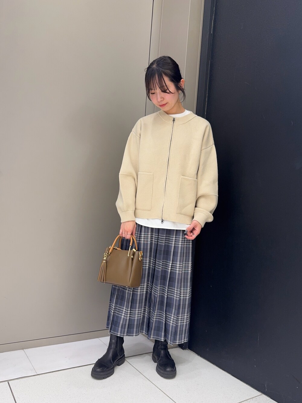 ニットZIPブルゾンはデニムなどのパンツにもスカートにも合わせやすいアイテムです! 冬はもちろん、春先の暖かい日にはブルゾンを羽織るだけで良さそうです☀️ スカートはMサイズを着用しています! Sサイズもあるので選べるところが良いですよね! 鞄は手持ちでもショルダーにもできる2wayタイプです!