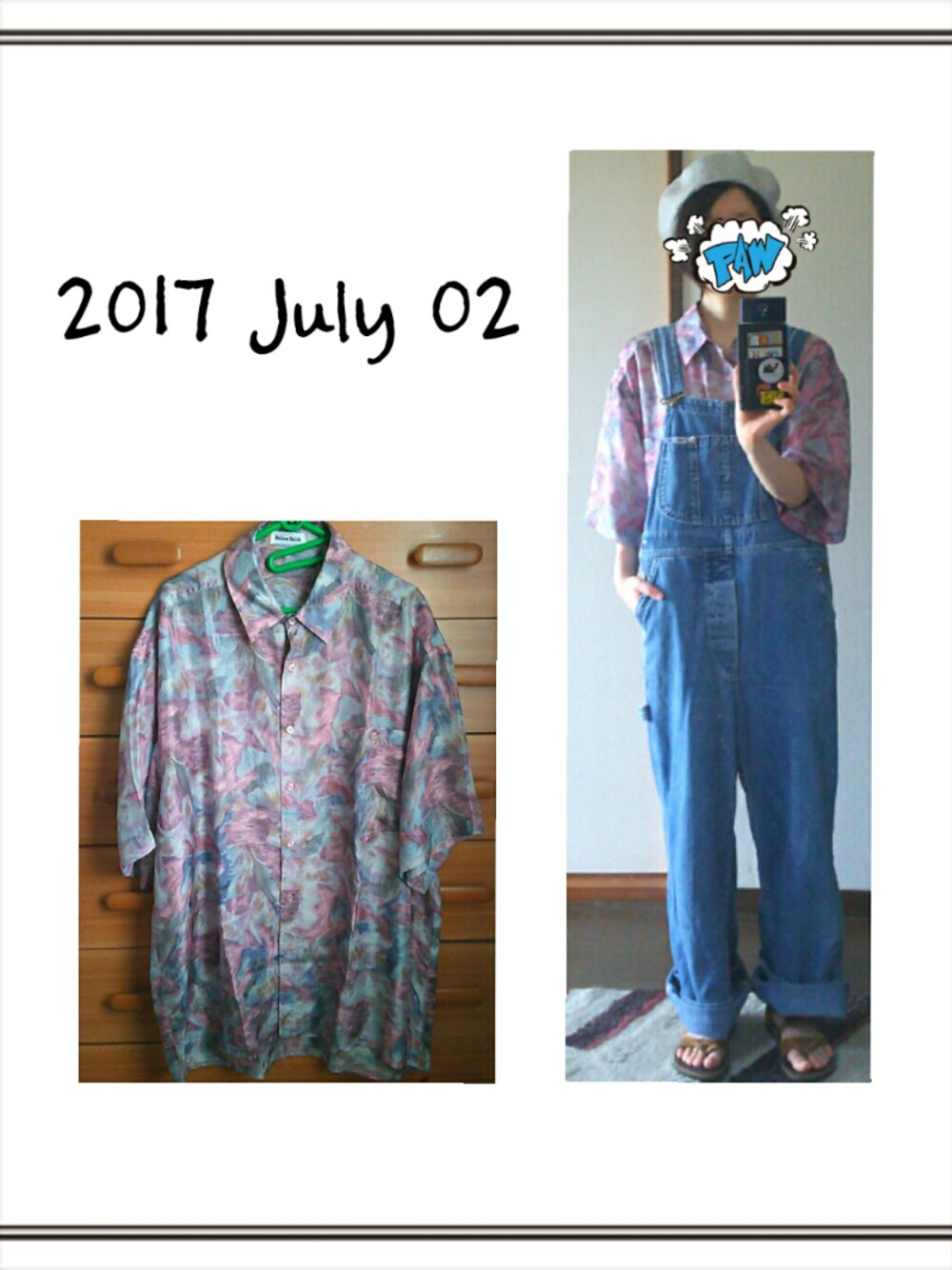 シルクシャツ✕オーバーオール ベレー帽 シルクシャツ オーバーオール サンダル シルクシャツを買って早々 嬉しげに着てる。 そういやもう、7月に入ったのね。 今年も折り返し。早い。 いつも、いいねをありがとう🙇💓