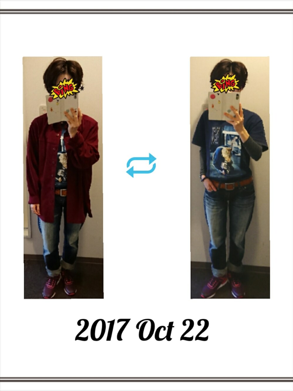 ネイビー✕ボルドー 外に出るとちょっと肌寒いよね。 だぼっと古着で整えてみた。