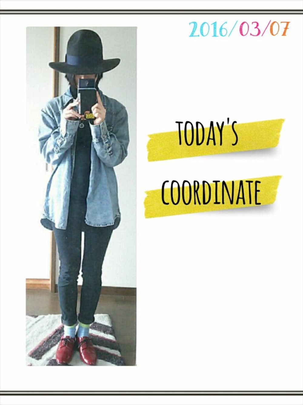 ハット デニムシャツ タートルネック チノパン 最近、春らしく 暖かくなってきたので。 とはいえ、薄手では まだ肌寒い。 タートルネックセーター くらいがちょうどいい気がする。 重たい配色になってしまった…。 春らしく明るい色を取り入れないと。
