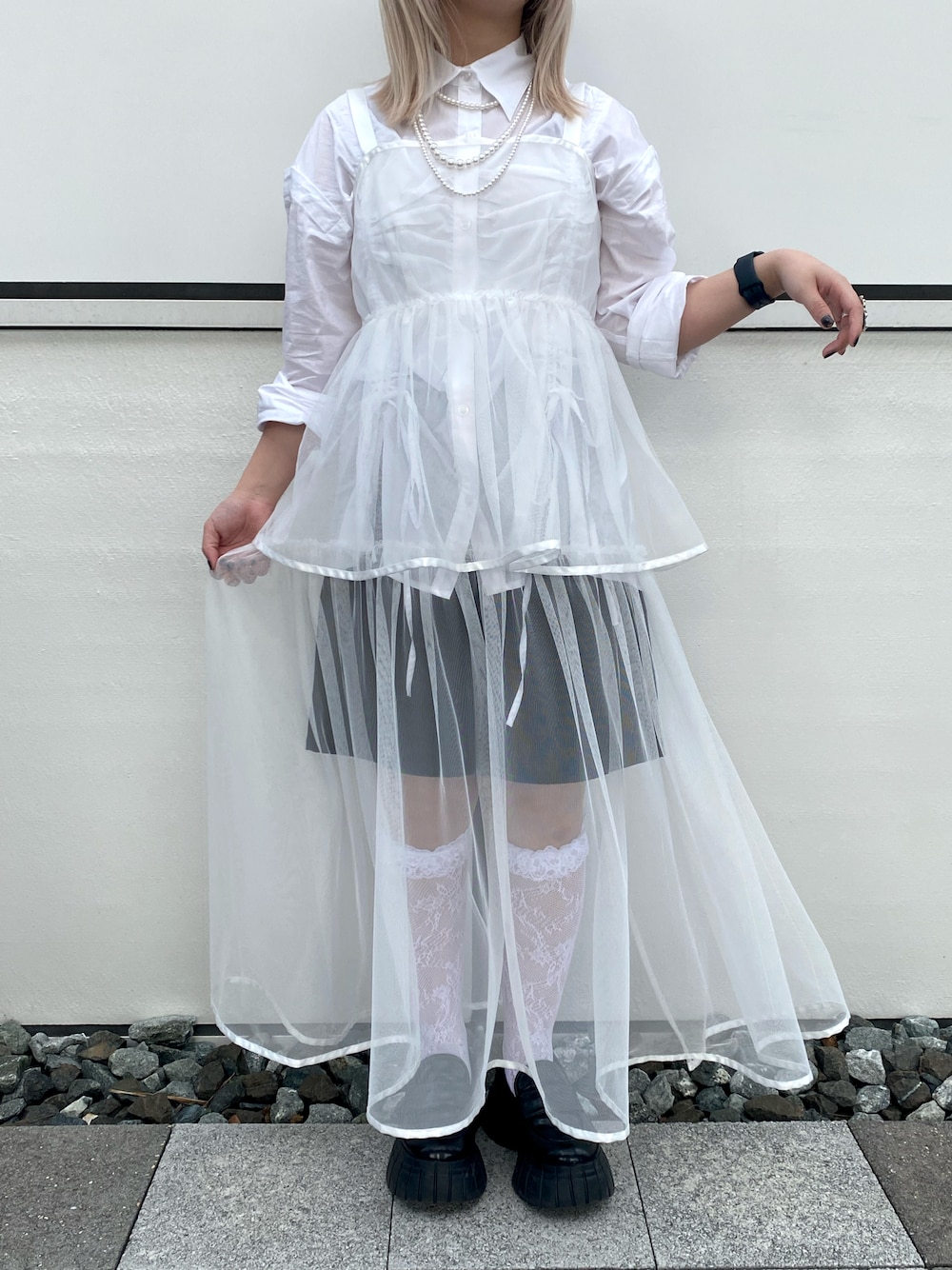 404のシャツ/ブラウス「【再入荷】OPEN SHOULDER DROST SH オープン ショルダー ドロスト シャツ リボン」を使ったコーディネート