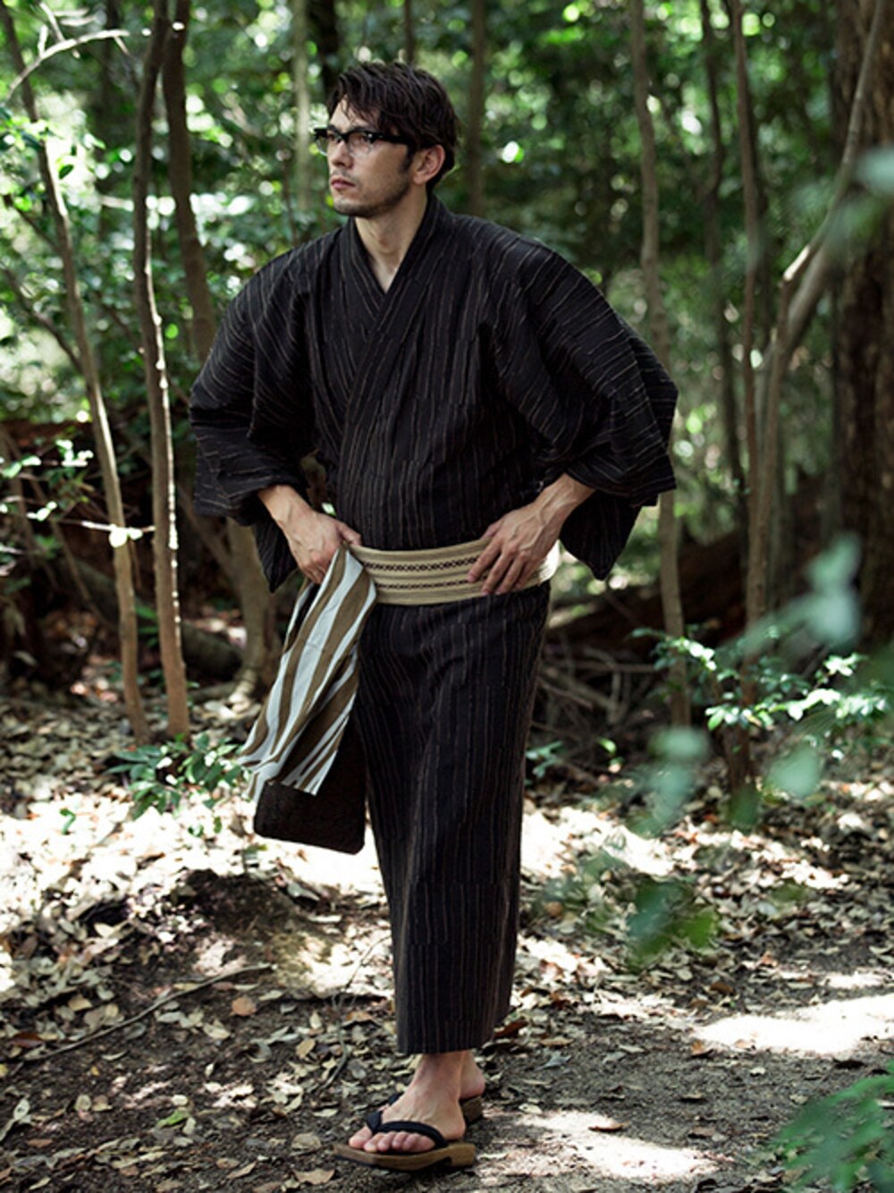 kimonoあんのんの浴衣「特選シンプル柄・男性用お仕立て上がり浴衣4点セット」を使ったコーディネート